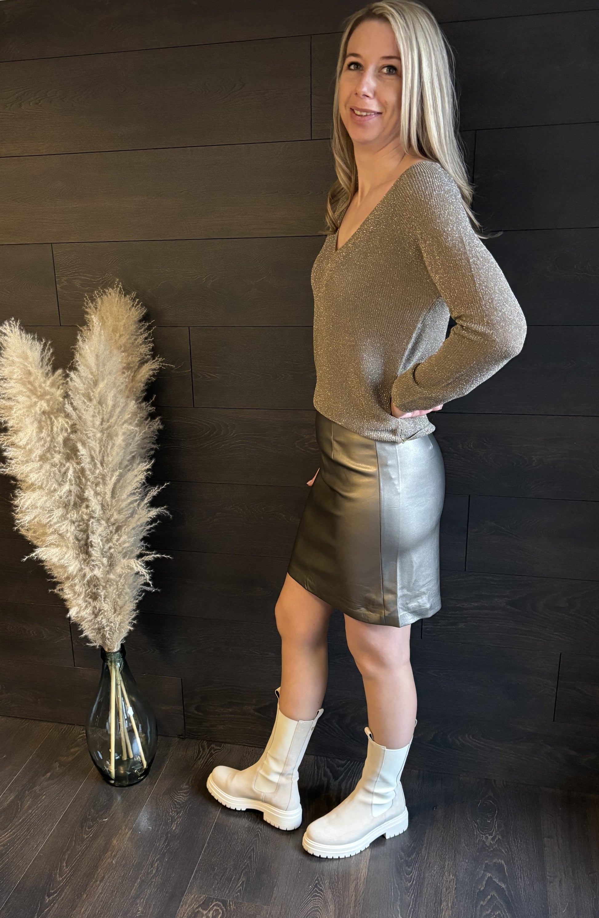 Dit lederen rokje is zeer goede kwaliteit moeilijk te onderscheiden van echt leder, zacht langs binnen wat aangenaam maakt om te dragen. Is met ritssluiting langs achteren, mooi van lengte ook als je gaat neerzitten blijft deze mooi op zijn plaats. Kan je met heel veel combineren, heb deze ook in het zwart.