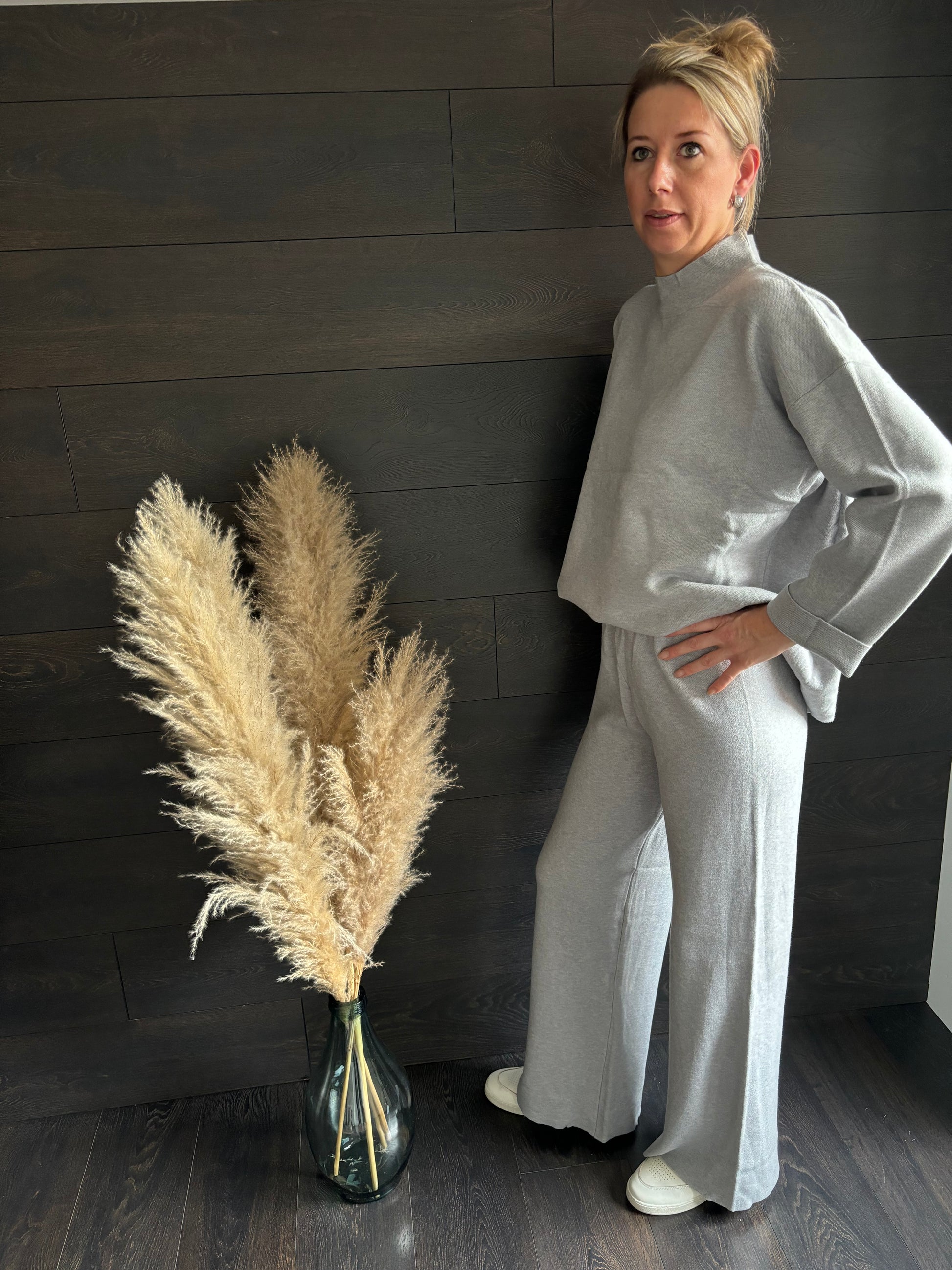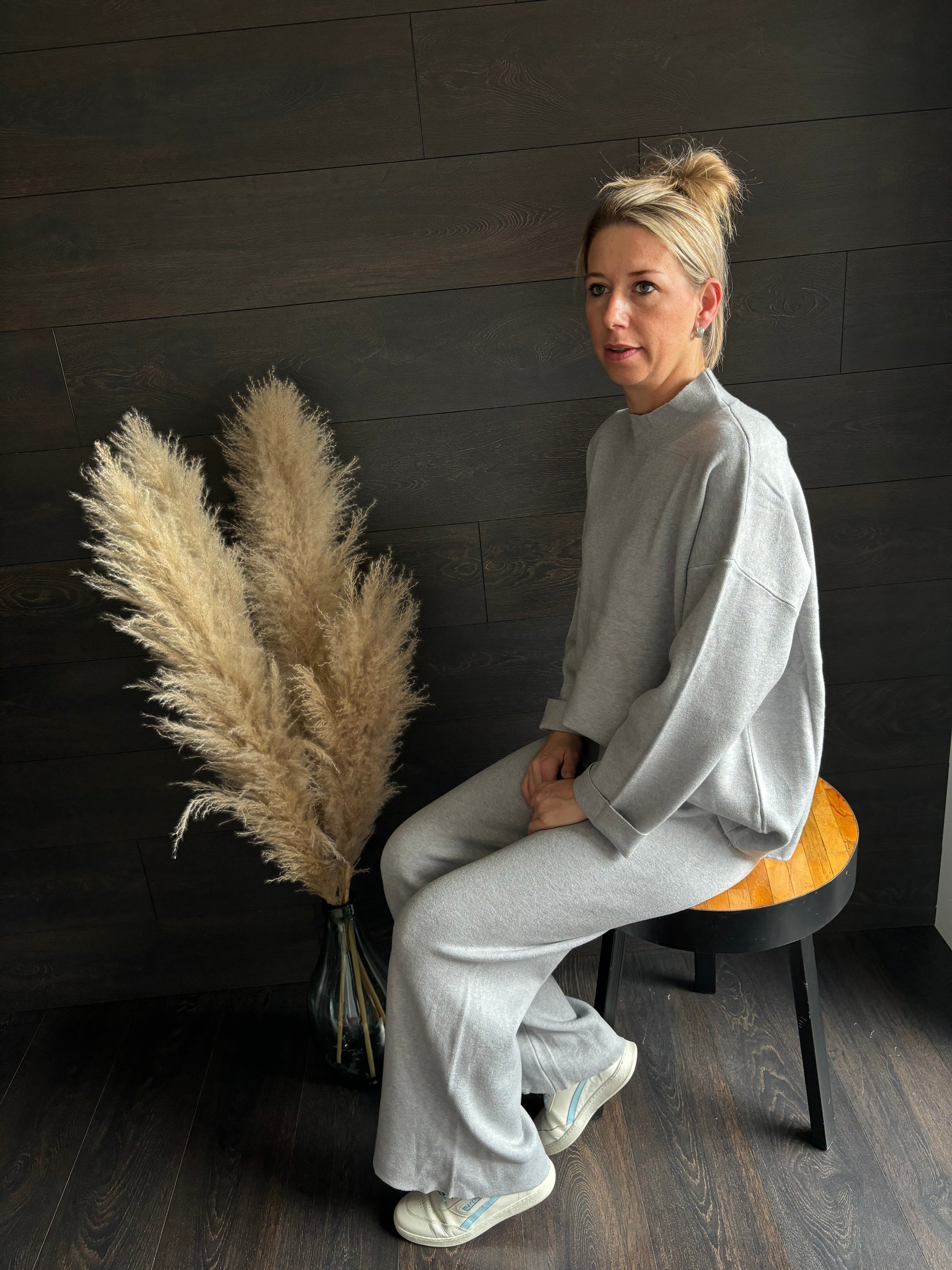 Dit leuke comfortabele huispak is vervaardigd uit een super zachte warme stof. Dit is TU maar kan zeker van maat XS tot maat L gedragen worden. Ik heb deze in twee kleuren grijs en taupe kleur. 50% viscose 30% polyester 20% polyamide.