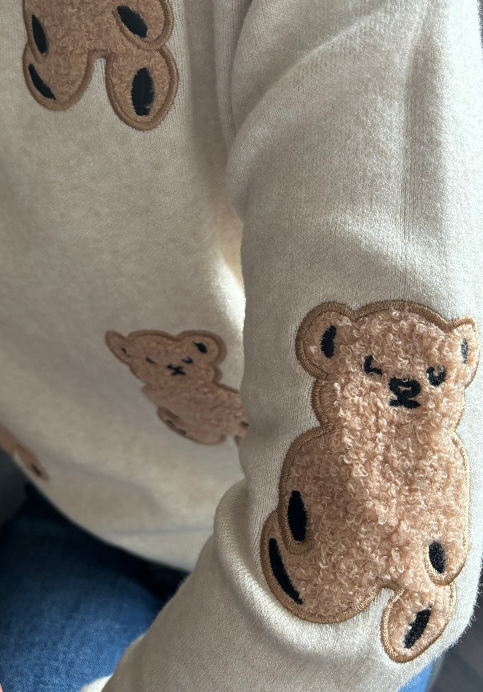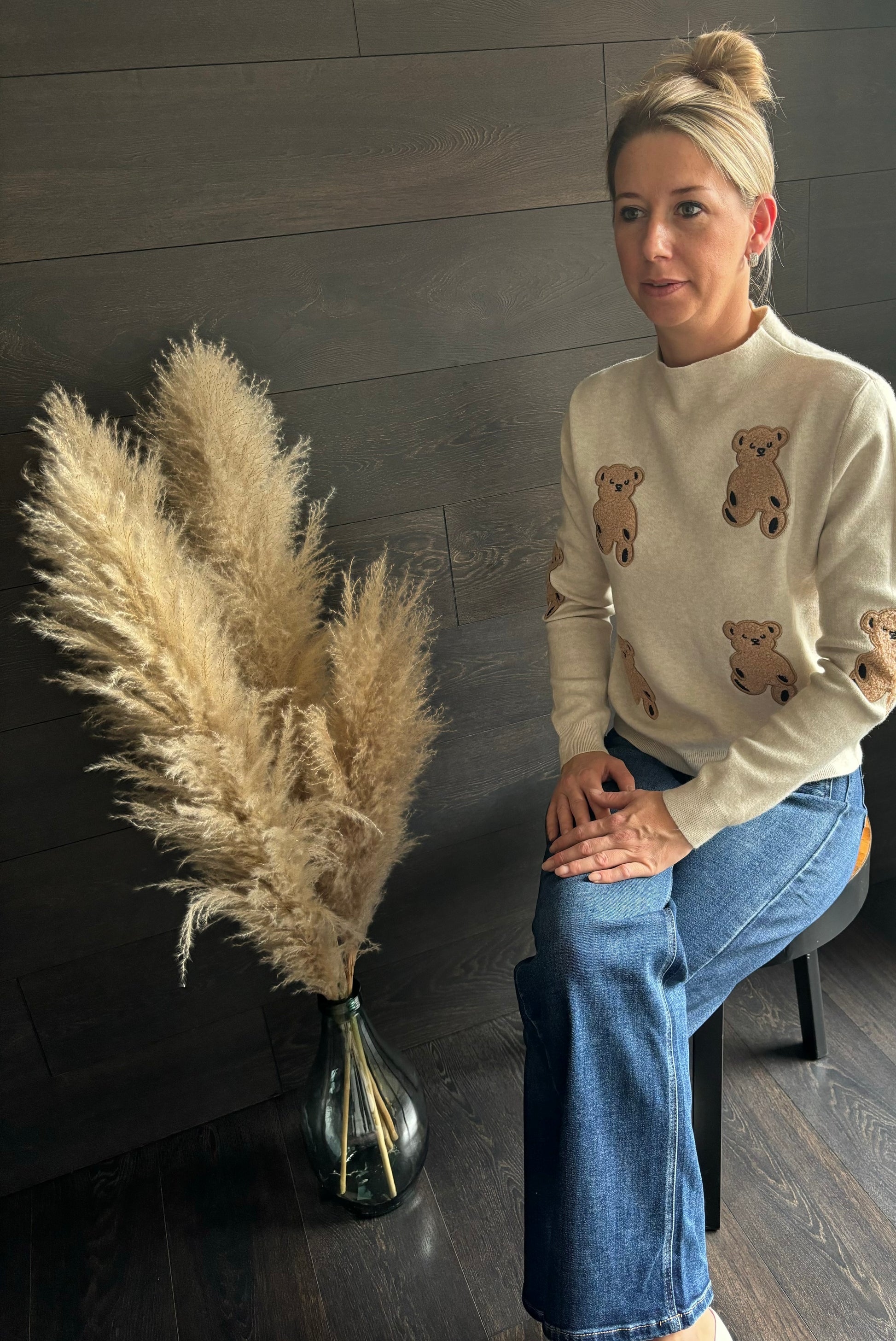 Een mooie warme gebreide trui met meerdere beren erop als mooi detail. De trui tailleert klein XS tot M zou ik aanraden, het is geen lange trui eerder voor op een hoge taille jeans of broek te dragen. Vervaardigd uit 47% viscose 28% polyester 25% polyamide. de trui heb ik in twee kleuren ecru en taupe kleur.